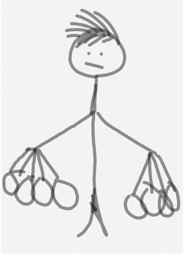 +گفتم با رسم شکل دوست پسرشو بهتون نشون بدم🤣😂🤣اوناهایی که دستش هستن، مثلا کیسه پلاستیکه😁 دیگه ببخشید نقاشیم خوب نیس🤪😂