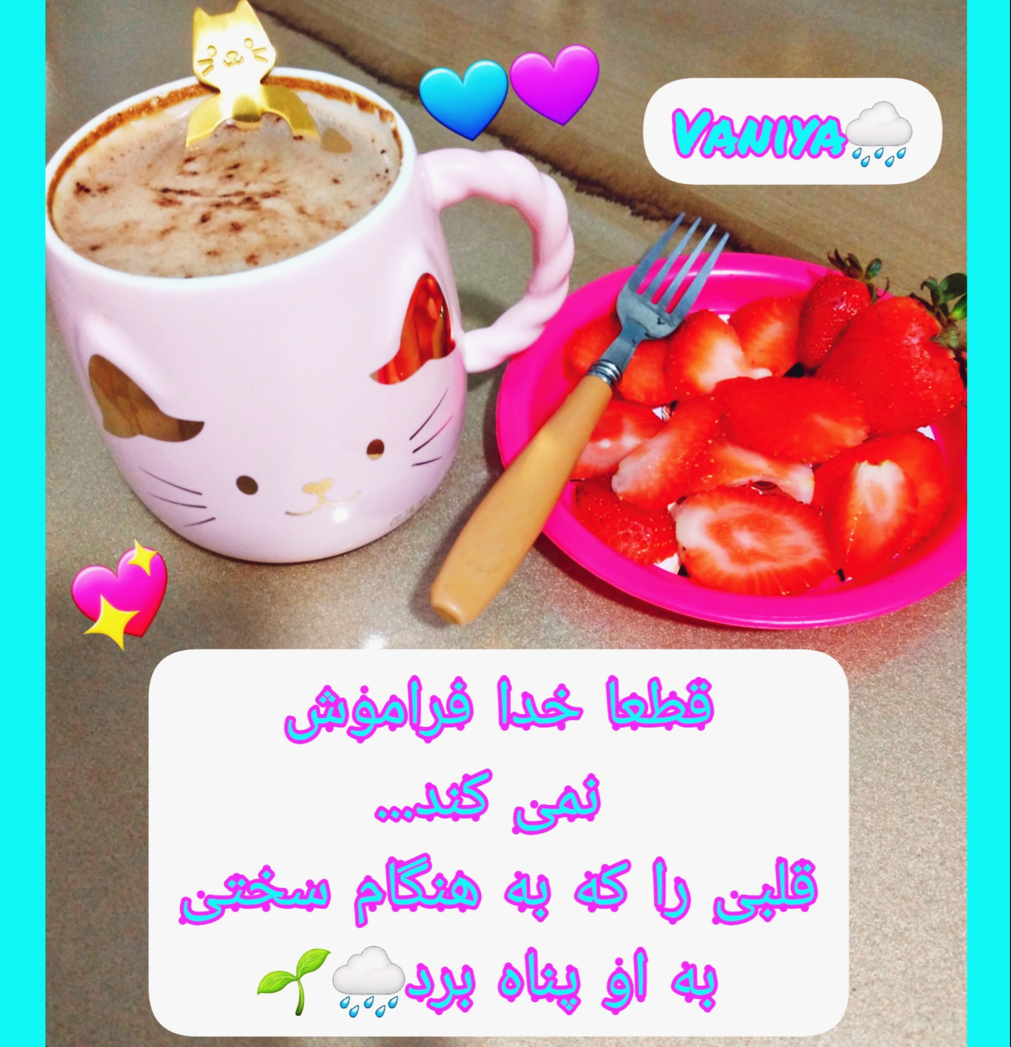 صدای بارون روی شیروونی، حس و حال خونه های شمال رو به آدم میده🌱دلم می خواست برم زیر بارون قدم بزنم ولی فقط به تماشای بارون از روی بالکن اکتفا کردم🌧🌌 و بعد یه چندتا توت فرنگی برداشتم تا با کاپوچینو بخورم☕🍓😅استاد می گفت چیزای جدید رو امتحان کنید و فکر کنم یه ترکیب جدید بود برامD=